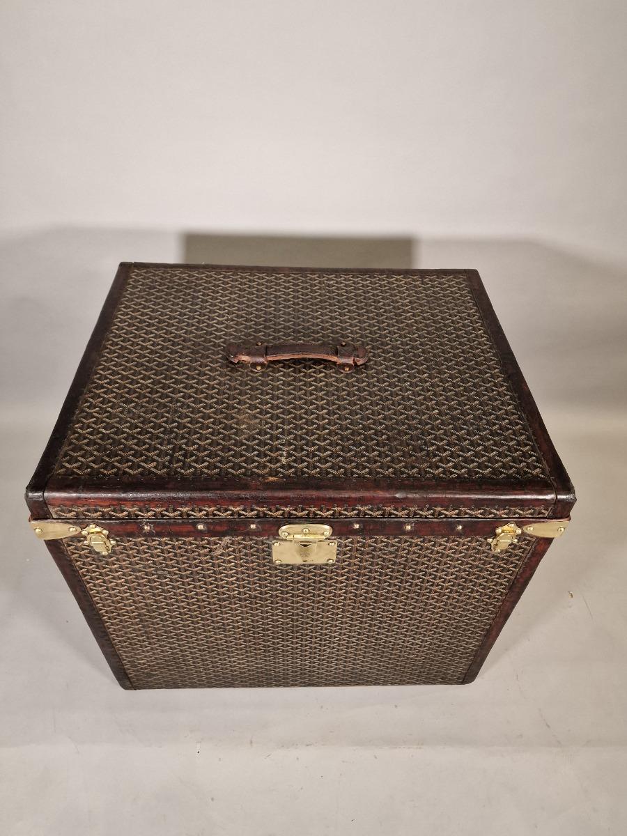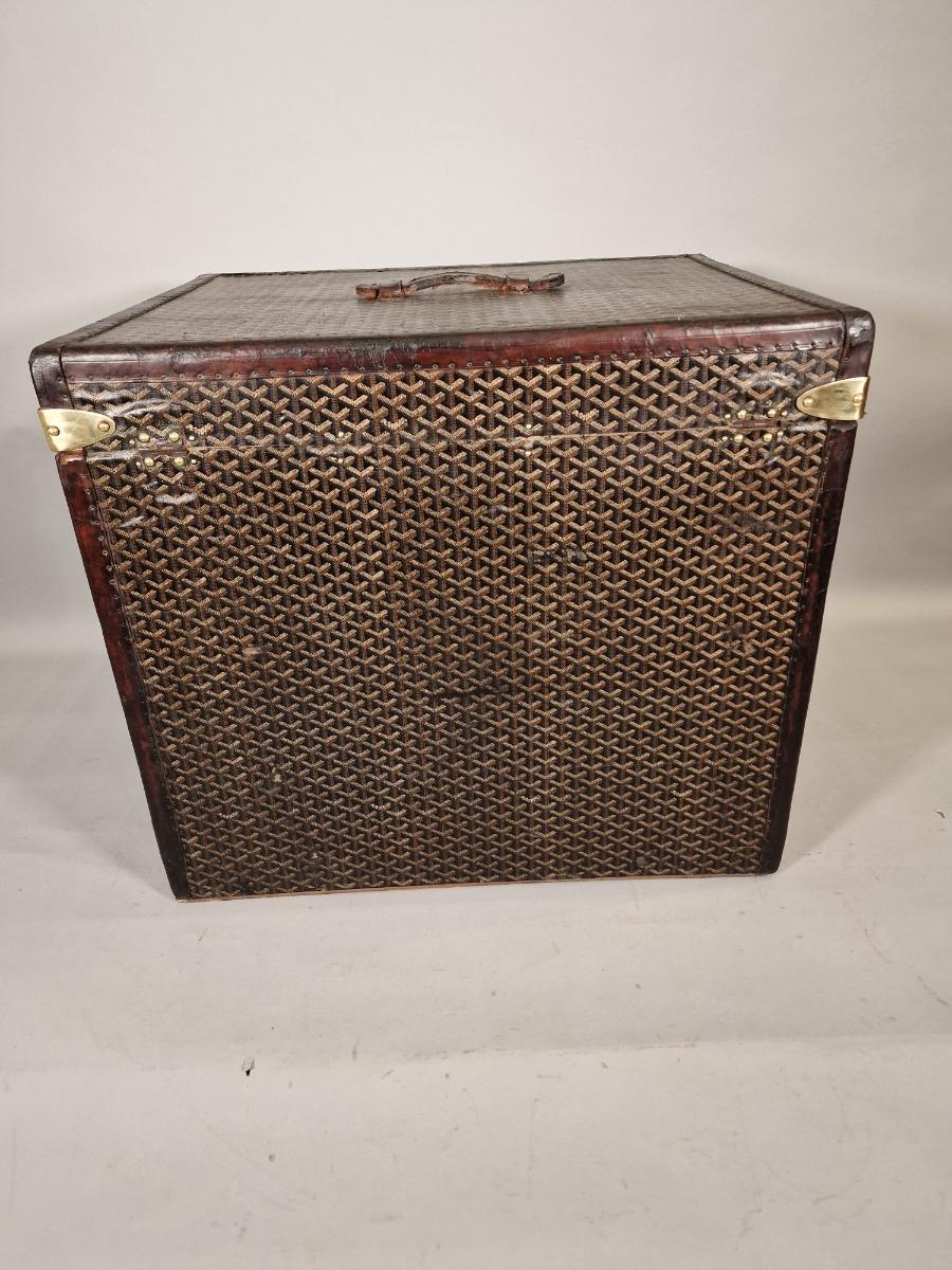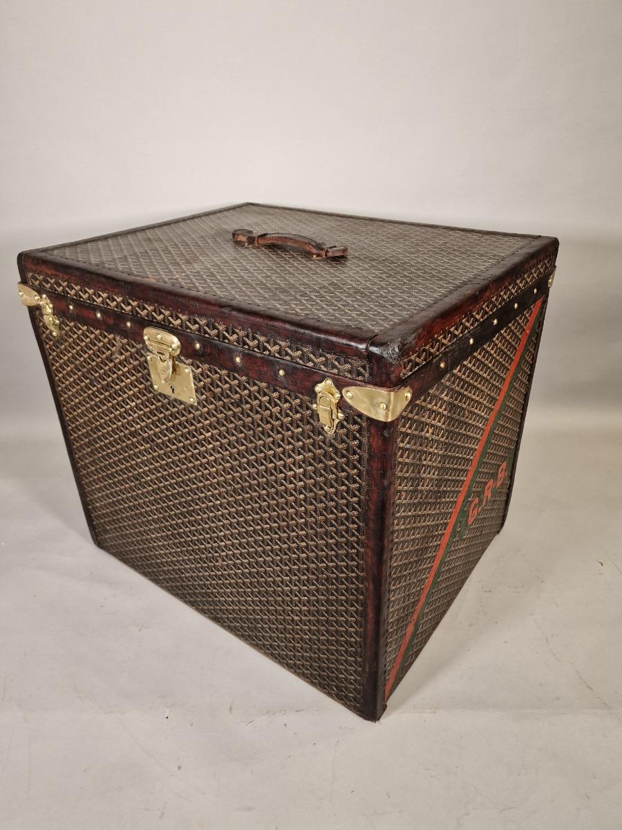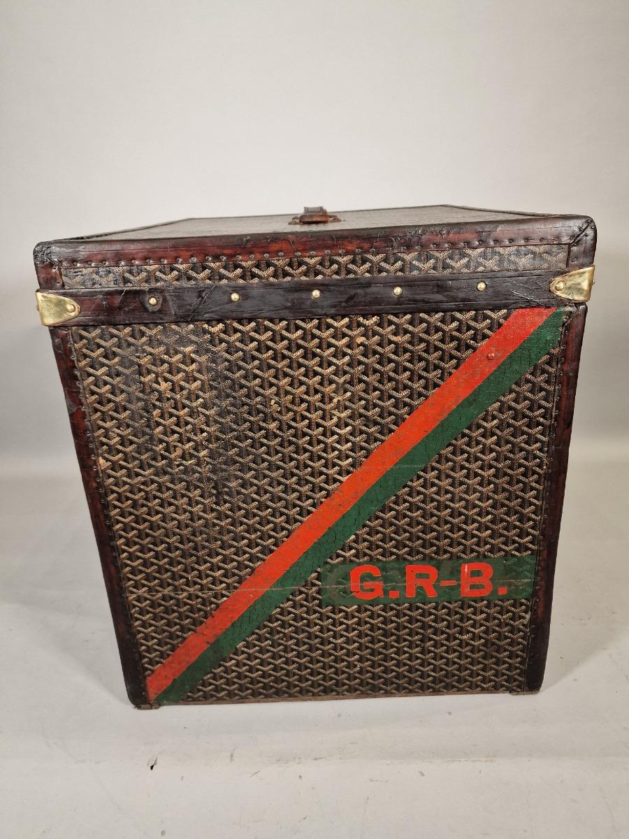Malle à chapeaux Goyard , belles dimensions, jolies bandes de couleur sur les côtés.