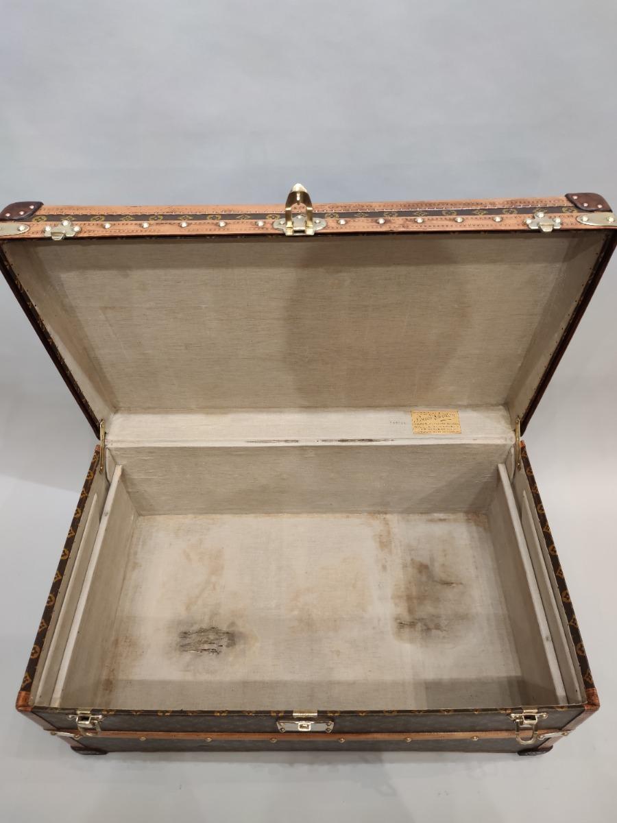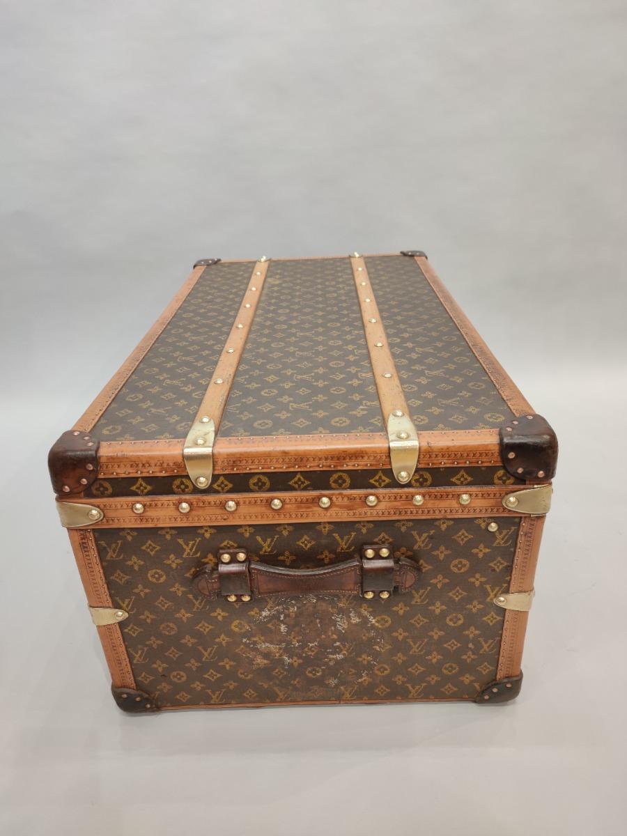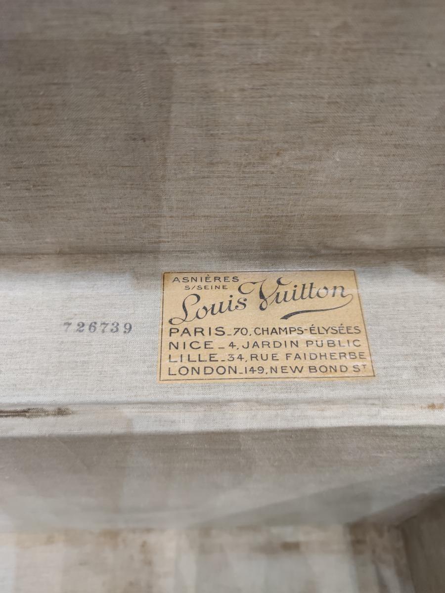 Malle Louis Vuitton cabine datant du début du XXeme siècle. Laiton, lozine et les coins en cuir font de cette malle un très beau objet.