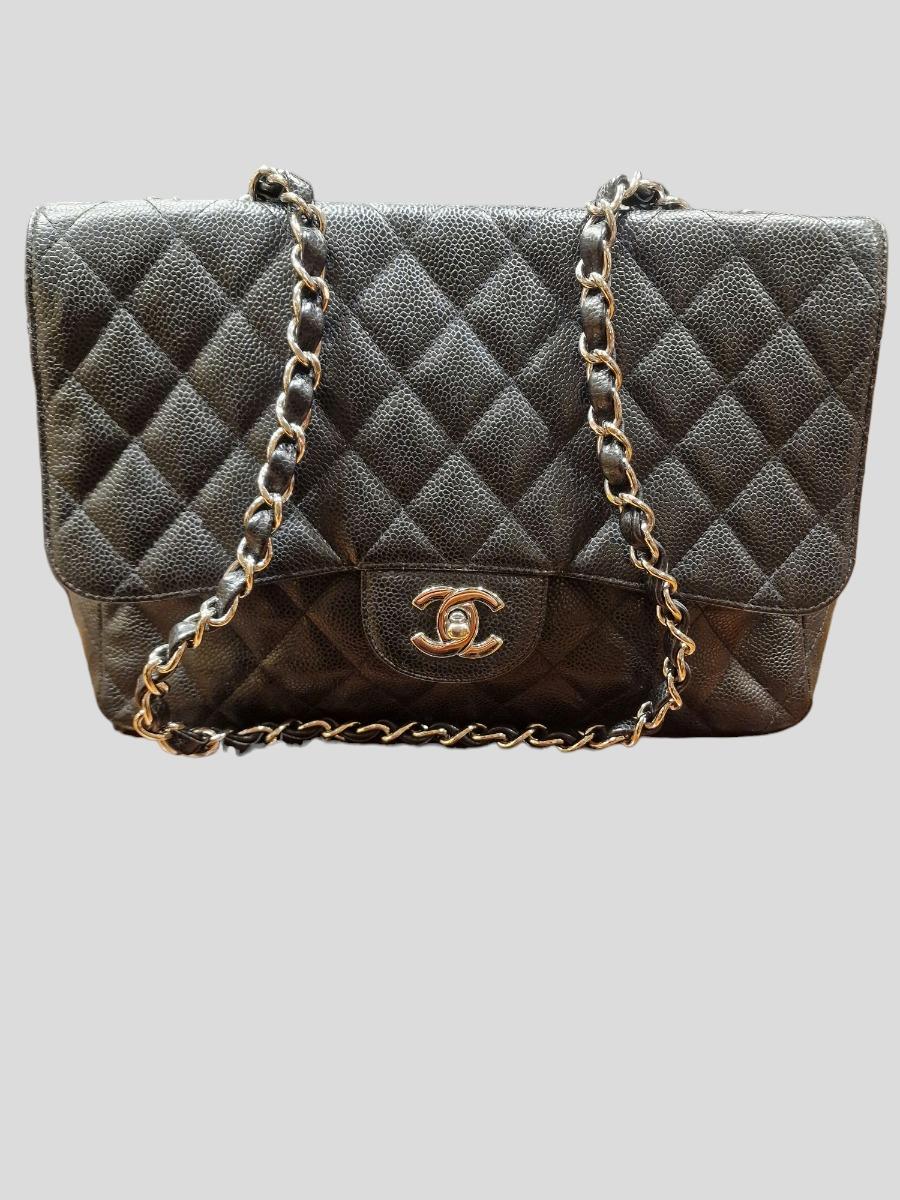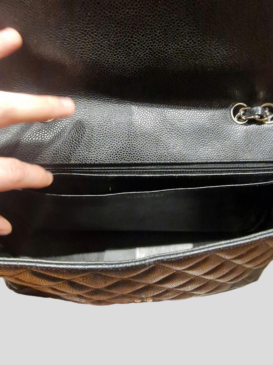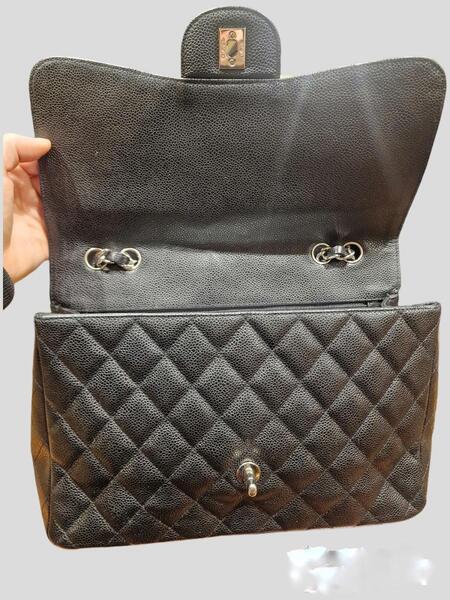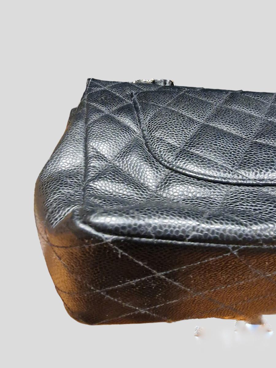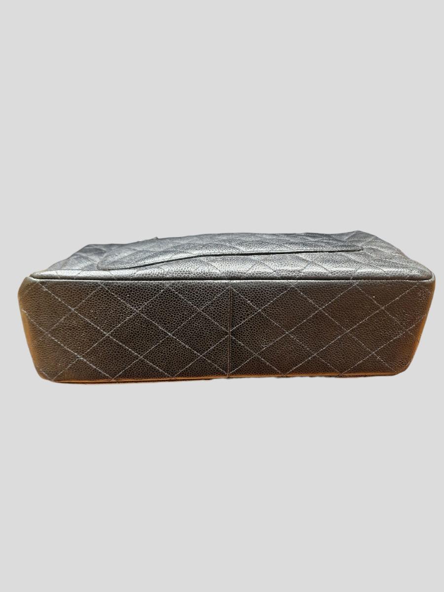 Très jolie sac Chanel jumbo en cuir caviar finitions argentées