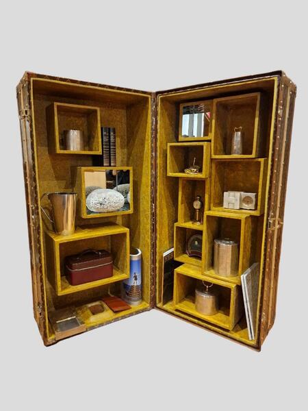 Malle penderie revisitée en cabinet de curiosité par l'artiste Coralie Laverdert ayant participée en 2020 et 2022 à l'exposition les aliénés au Mobilier Nationale.