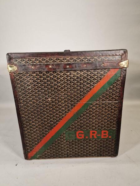Malle à chapeaux Goyard , belles dimensions, jolies bandes de couleur sur les côtés.