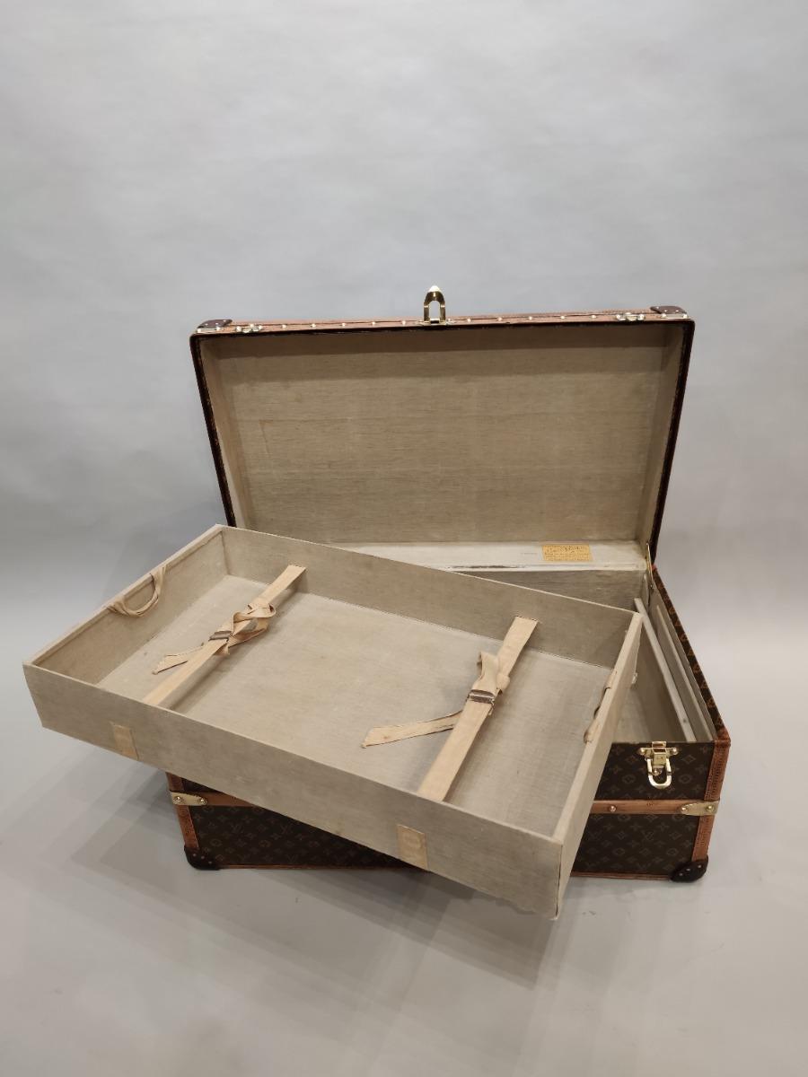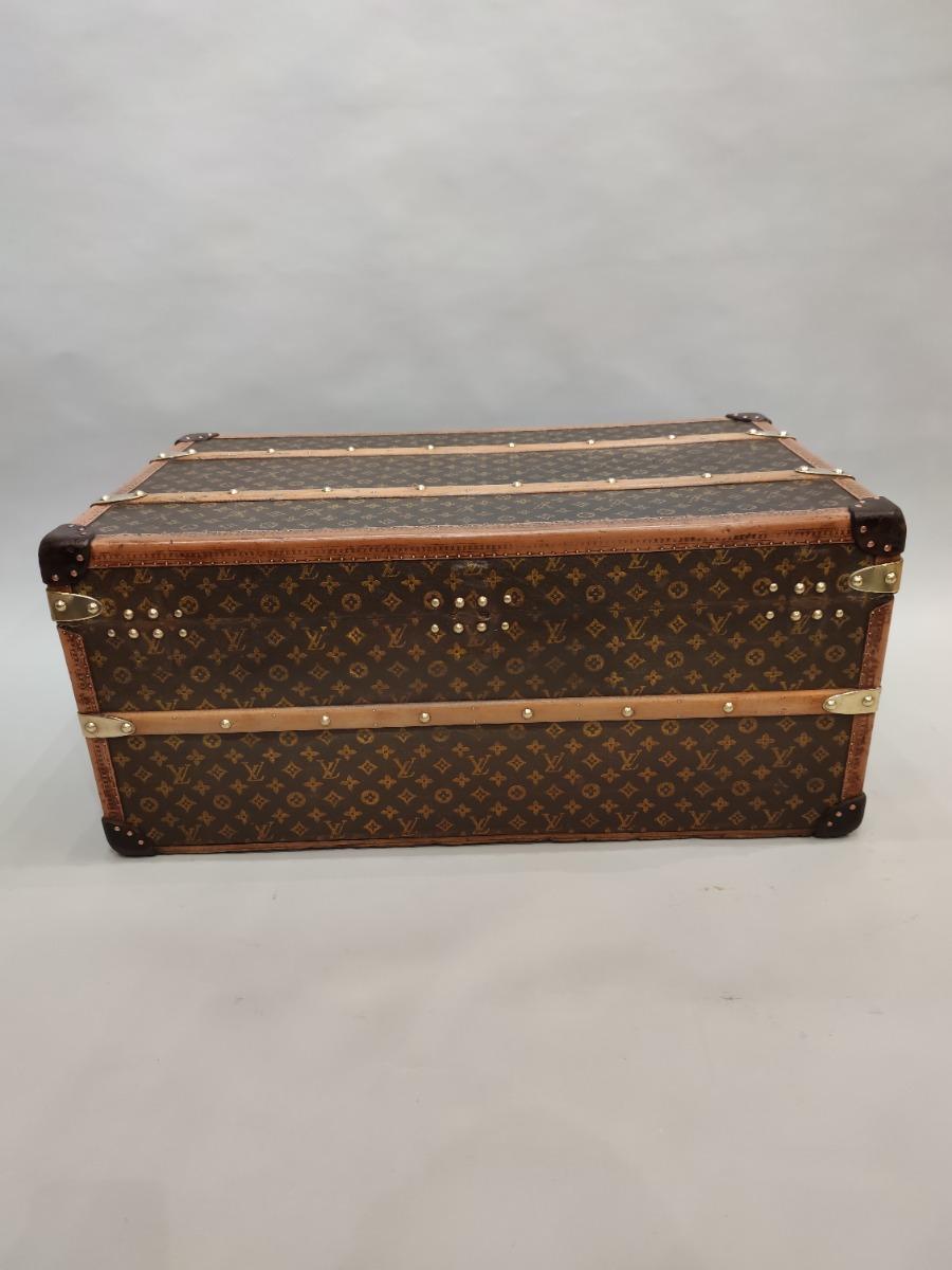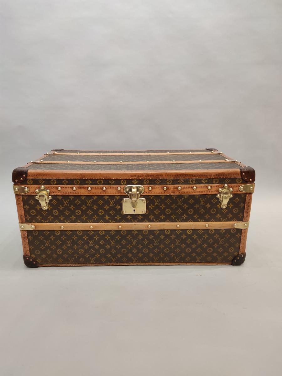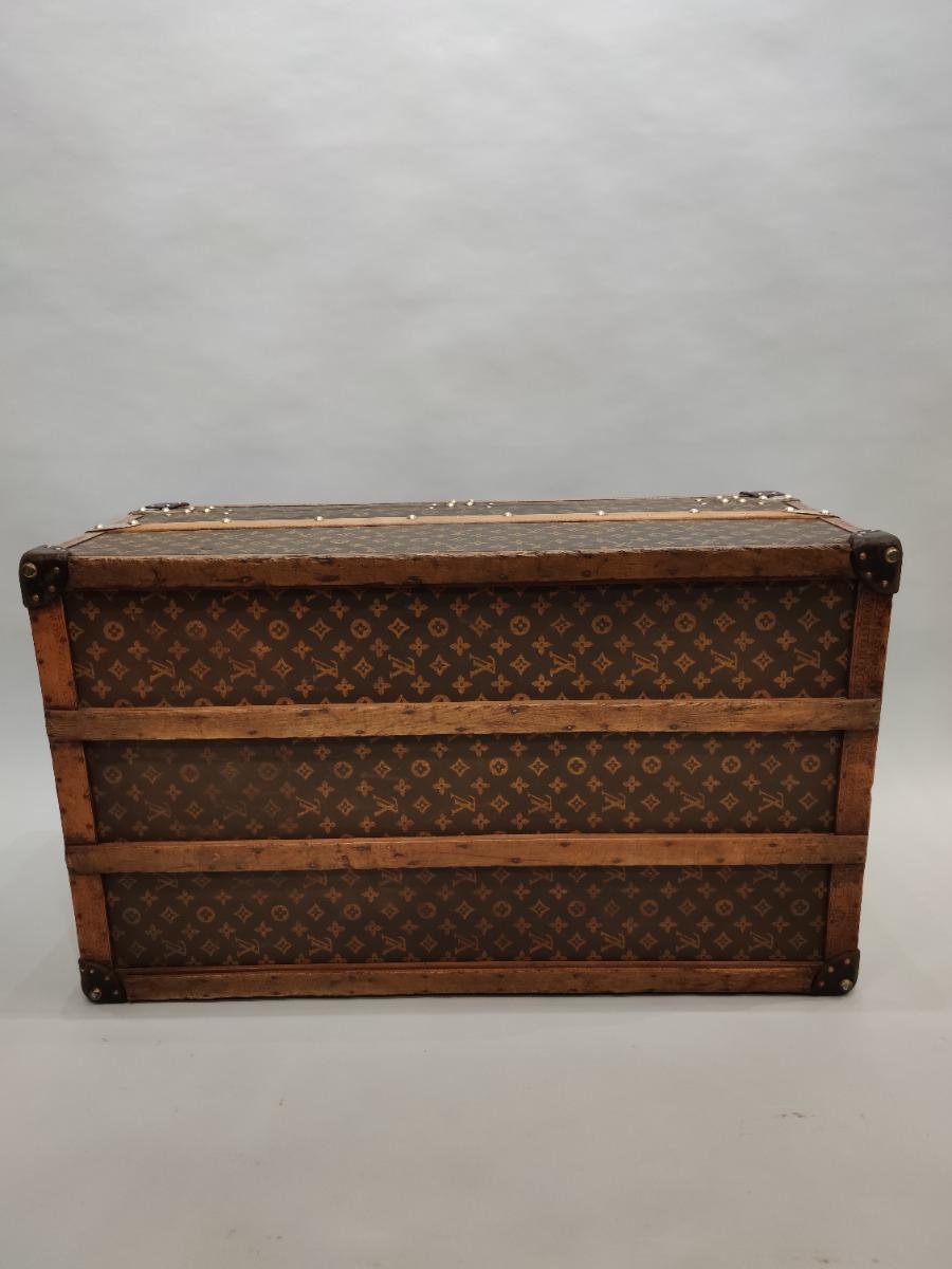Malle Louis Vuitton cabine datant du début du XXeme siècle. Laiton, lozine et les coins en cuir font de cette malle un très beau objet.