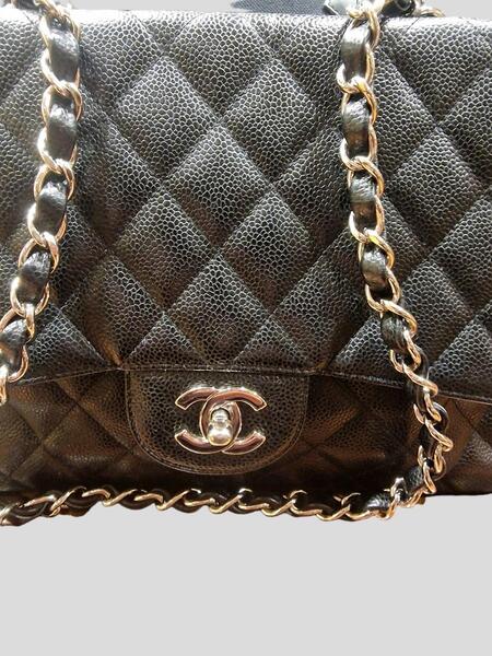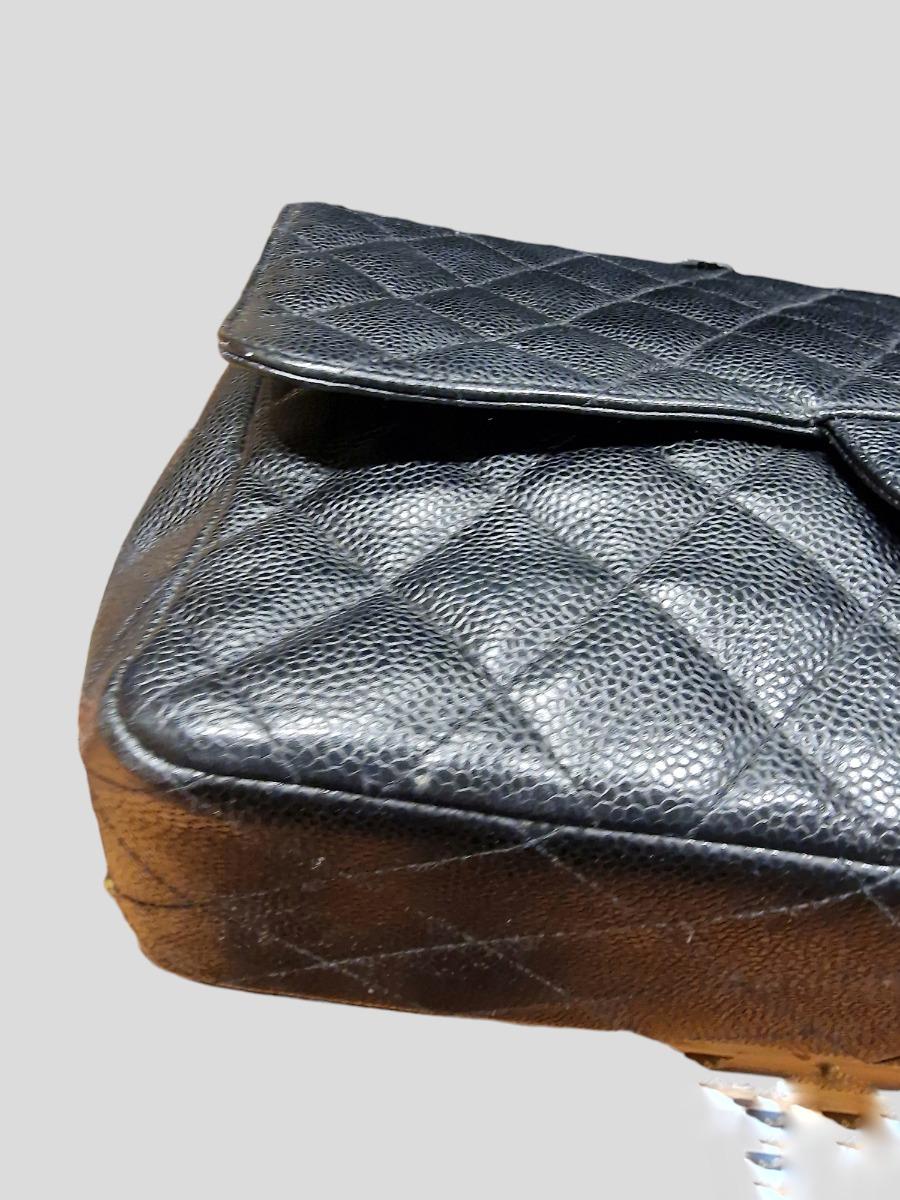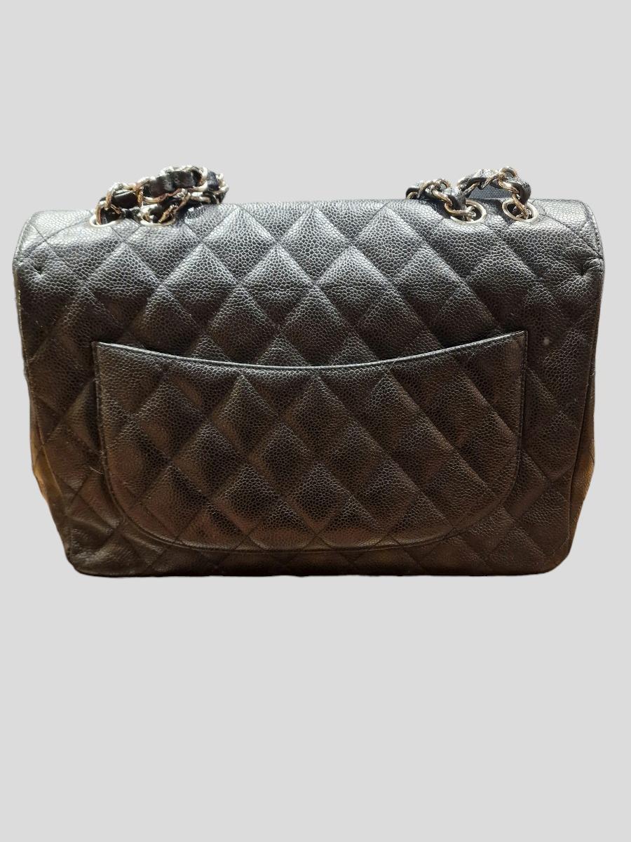 Très jolie sac Chanel jumbo en cuir caviar finitions argentées